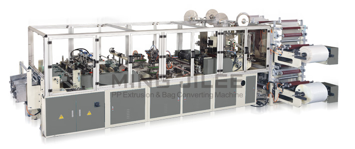 This machine is designed especially for all kinds of data bag (sheet protector) from the plastic feed material (CPP or IPP) to the finished product. The twin line machine can be operated in two ways: one or the other line machine can be operated independently or they can both be operated simultaneously.