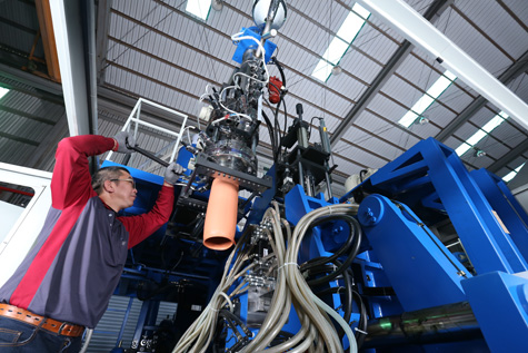 The blow molding machine produces primarily plastic vessels, such as bottle, drum tank, and plastic hollow production and ranged from volume 20 ml to 250 liters.