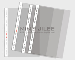 This machine is designed especially for all kinds of data bag (sheet protector) from the plastic feed material (CPP or IPP) to the finished product. The twin line machine can be operated in two ways: one or the other line machine can be operated independently or they can both be operated simultaneously.